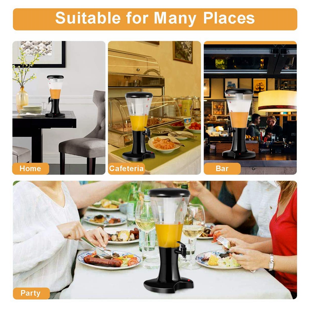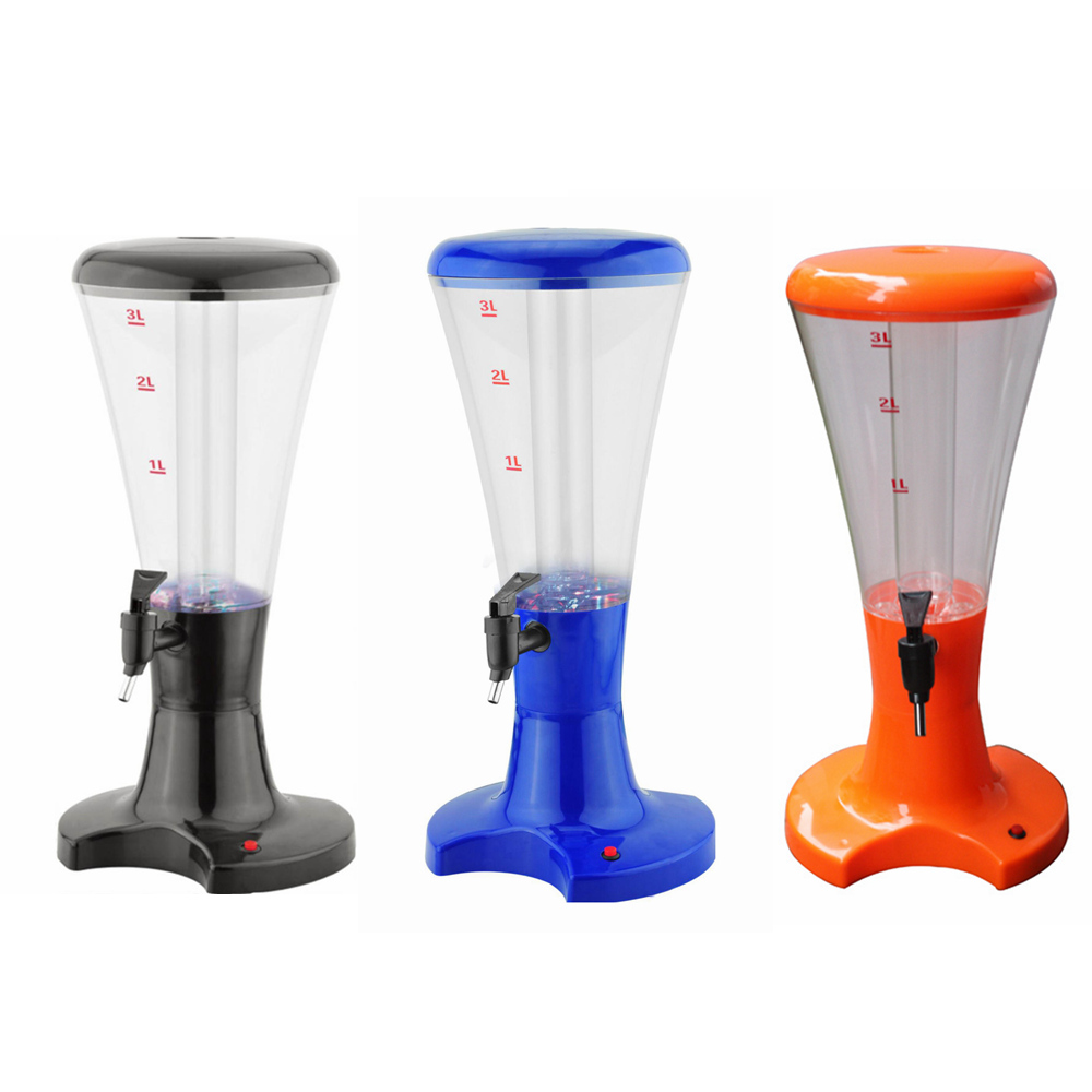 3 Liters Beer Tower Cold Draft Beverage Dispenser with Removable LED Lights Ice Tube BT48