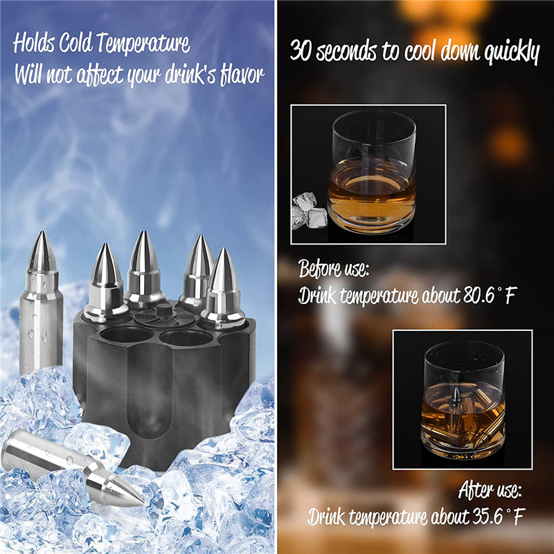 Bullet Whiskey Stones Stainless Steel Ice Cubes Quick-Frozen Bullet Ice Cubes Wine Beer Ice Cooler